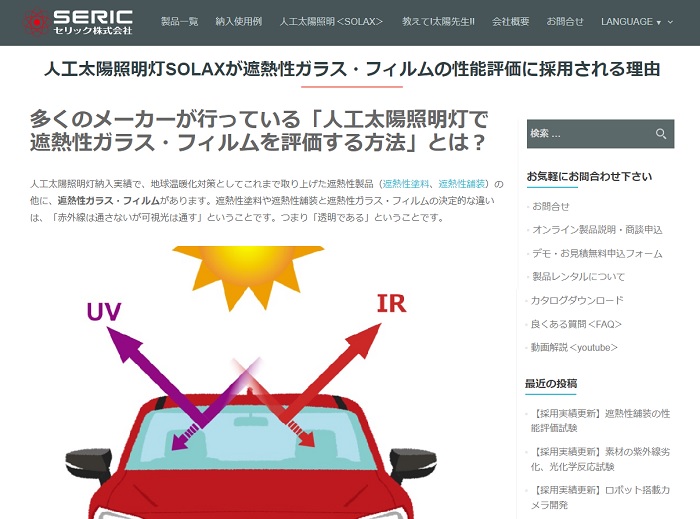 用途別採用実績に「遮熱性ガラス・フィルムの性能評価」を追加しました。ぜひご覧下さい。