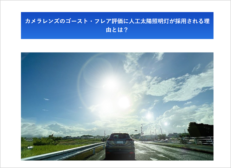 カメラレンズのゴースト・フレア評価に人工太陽照明灯が採用される理由とは?