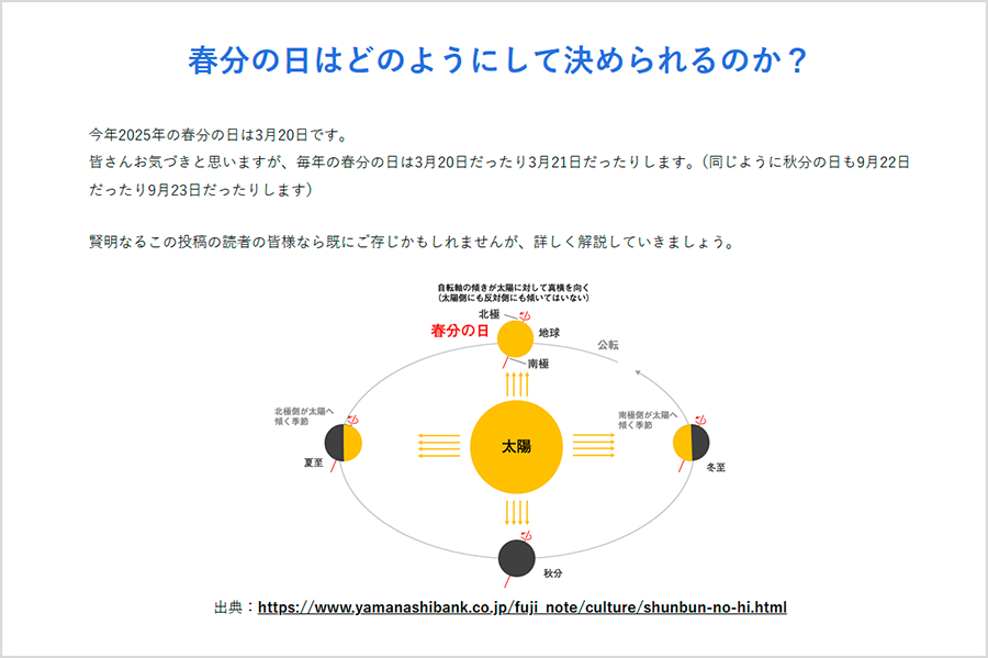 【太陽先生の豆知識更新】春分の日はどのようにして決められるのか?