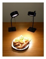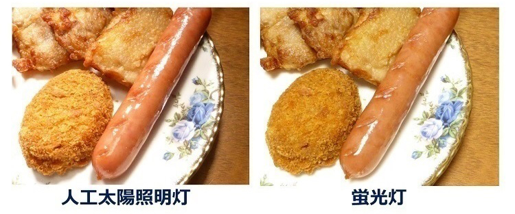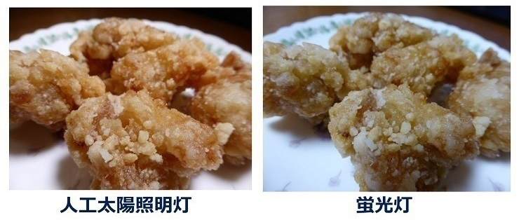 確かに、人工太陽照明灯の方が、「揚げたて」という感じが出て美味しそうに見えます