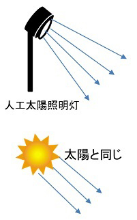 それに比べて、人工太陽照明灯の光は指向性が強い(つまりまっすぐな光)から、