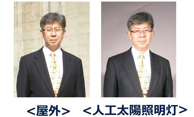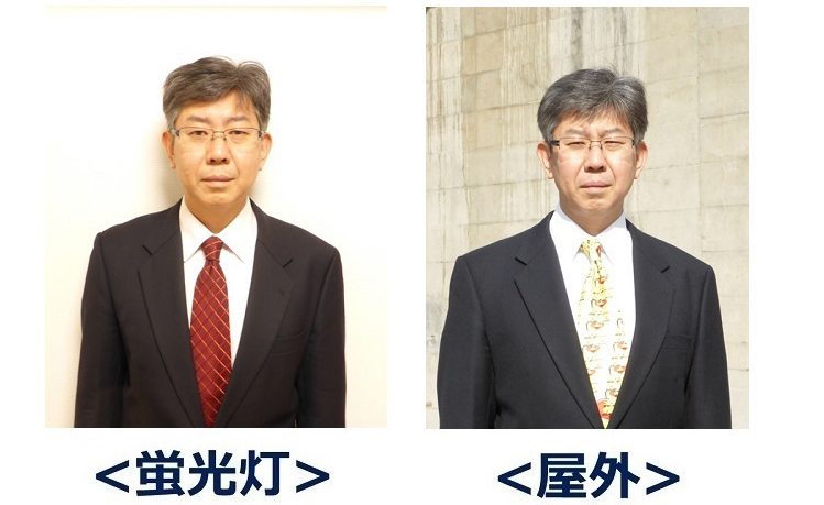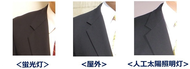 蛍光灯とは違い、屋外と人工太陽照明灯では、ほとんど同じように見えます。