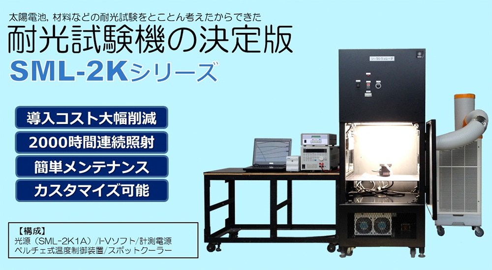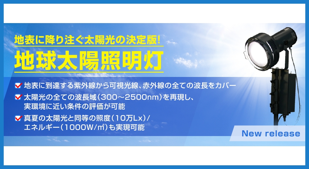 つまりここでご紹介する2機種はいずれも直射太陽光と同等の光(AM1.5)に相当する光を照射でき、照射できる範囲の大きさによって機種が選定されます。