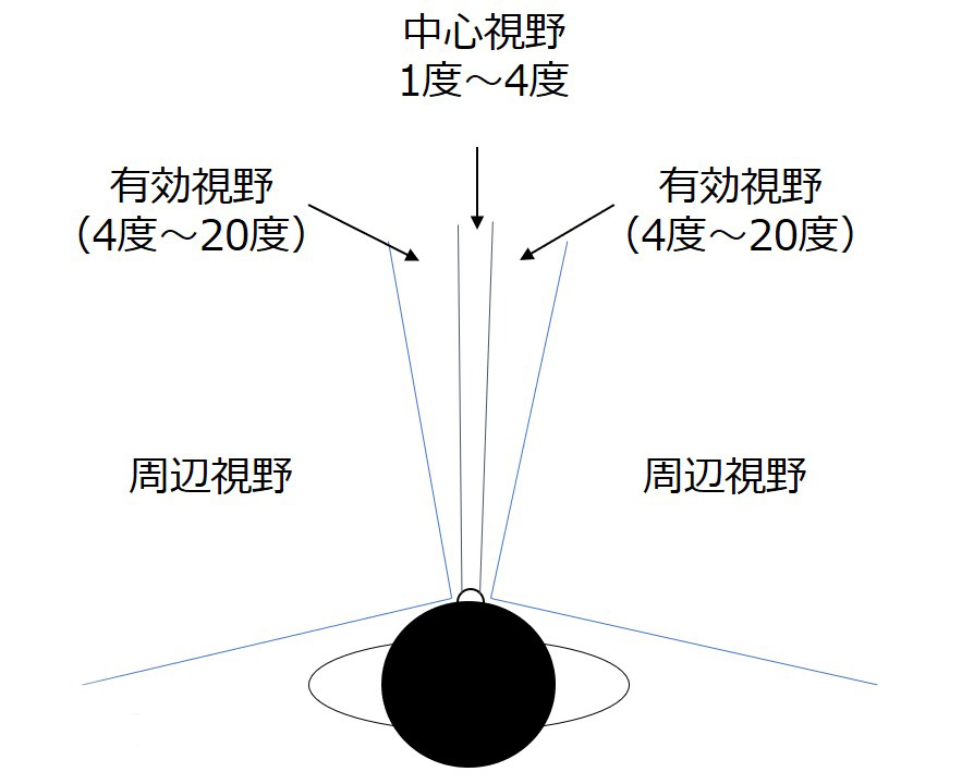 今の車には、様々な箇所にセンサやカメラが搭載されています。例えば、あるメーカーのレベル3の自動運転車では、完全自動運転(レベル5)ではないのでLiDARは採用されていませんが、それでも4個の360°カメラと1個の赤外線カメラが搭載されています。この車の周辺情報収集は、まずカメラでどこに何があるかを把握し、センサでその物体(人、他車、樹木や建物、障害物など)との距離を測る、というプロセスを高速処理します。カメラはドライバーの目に相当しますが、人間は1点に集中するとそこしか認識できません。例えば55インチのテレビで、2mの距離で映画を見るとします。このときの画面の端から端までの視野角は横約17度、縦約10度です。字幕を読んでいるとき、字幕以外の画面内のできごとは、良く把握できません。因みに人間の視野角は、水平方向に約200度、垂直方向に約125度、迅速に安定して見える安定注視野は水平に60~90度、垂直に45~70度程度、1点を注視する範囲の中心視野は1~2度と言われています。