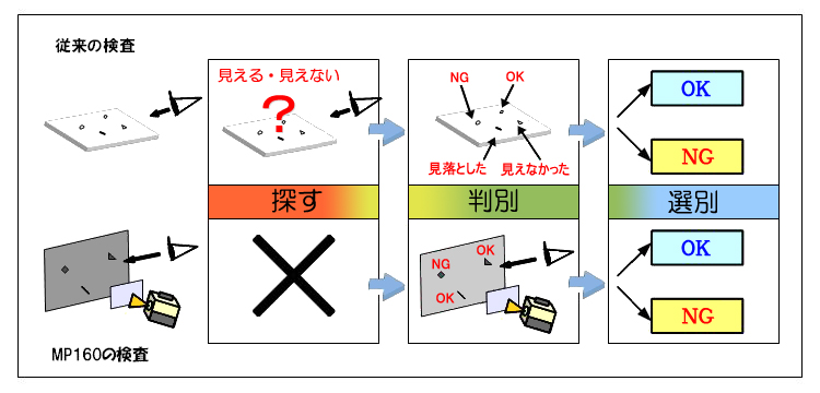 キズや欠陥箇所を全て投影してからOK・NGの判別をすれば、「見つけられなかった」や「見落とした」の発生率は抑えられると考えます。
