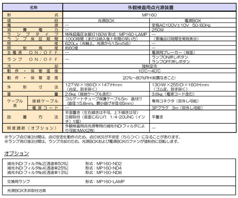 外観検査用点光源装置 MP160