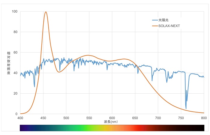 太陽光とSOLAX-NEXTの分光分布