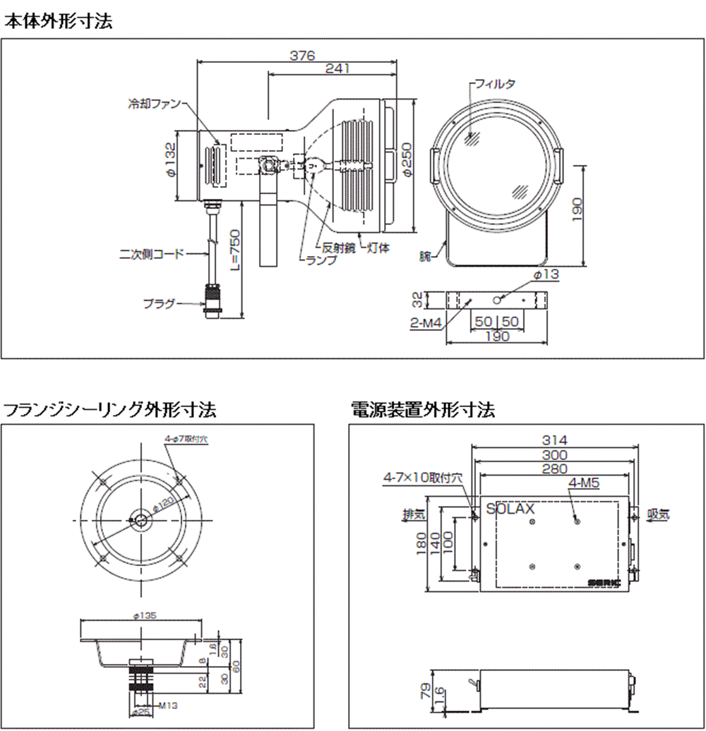 紫外線および赤外線のエネルギーは用途区分によりフィルターによって調整されていますので、お客様の用途により紫外線・赤外線の有無や光線の拡散度合、強弱などの必要条件から仕様をお選びいただけます。