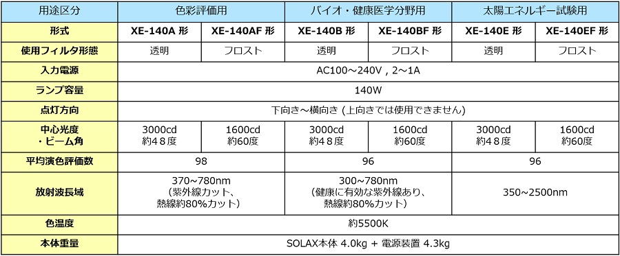 紫外線および赤外線のエネルギーは用途区分によりフィルターによって調整されていますので、お客様の用途により紫外線・赤外線の有無や光線の拡散度合、強弱などの必要条件から仕様をお選びいただけます。