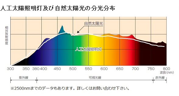 人工太陽照明灯 XELIOS500Wシリーズは、晴天時、正午±2時間に地表に到達する太陽光と同じスペクトルの光を出す、人工太陽照明灯の基本となるモデルです。室内の作業でも太陽のもとで見るのとまったく同じ色彩でモノを観察できます。